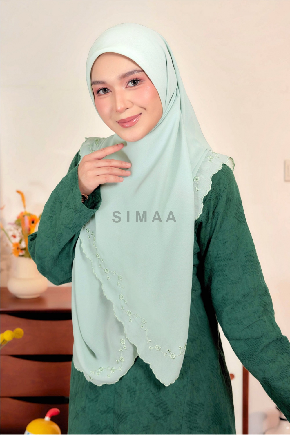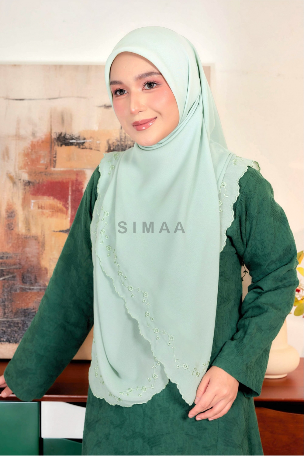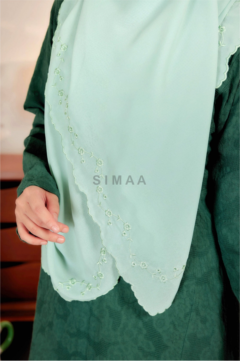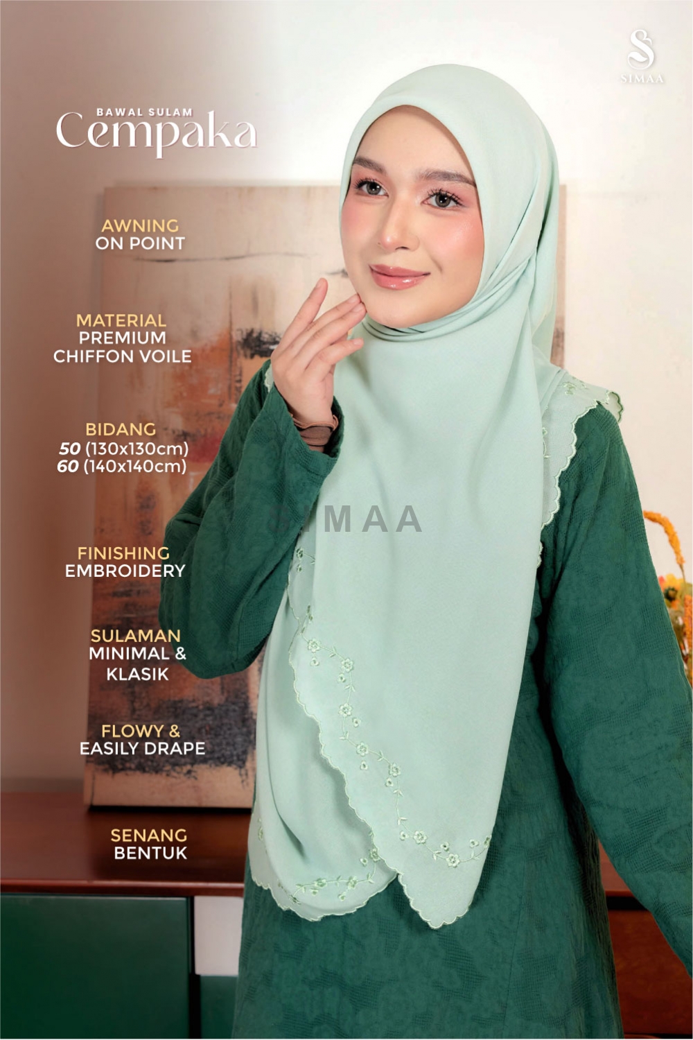 ** Model is 161cm tall and wearing Bawal Sulam Cempaka 60"