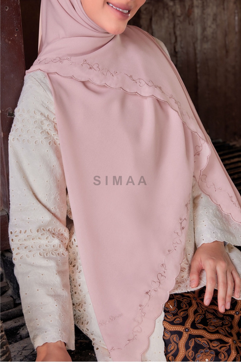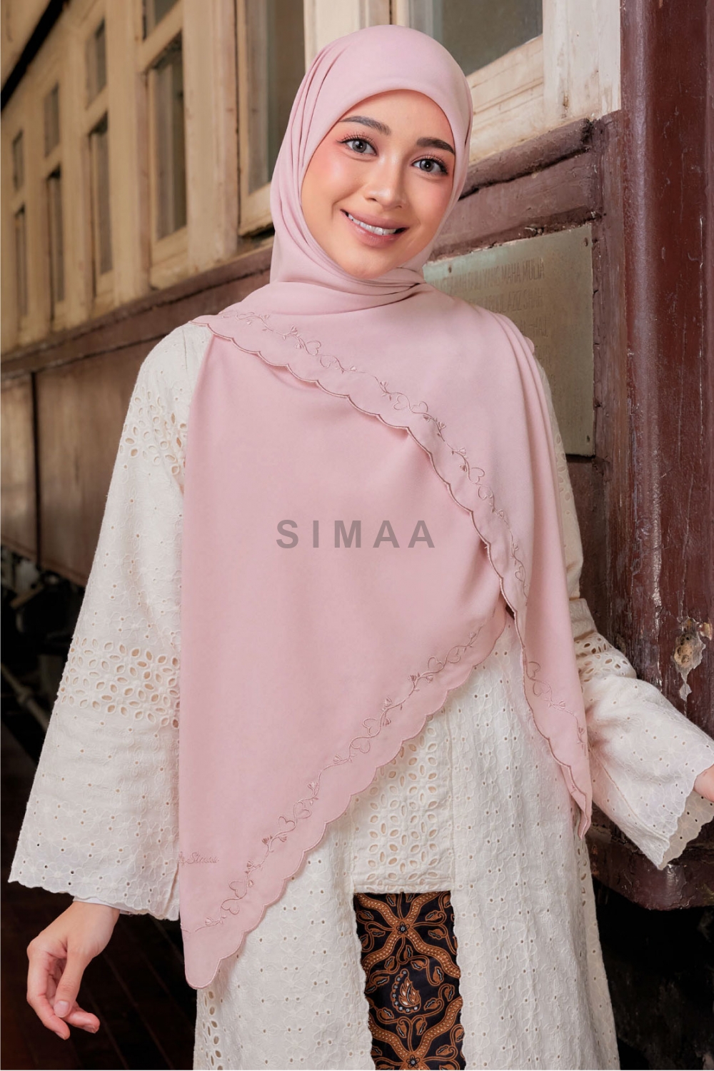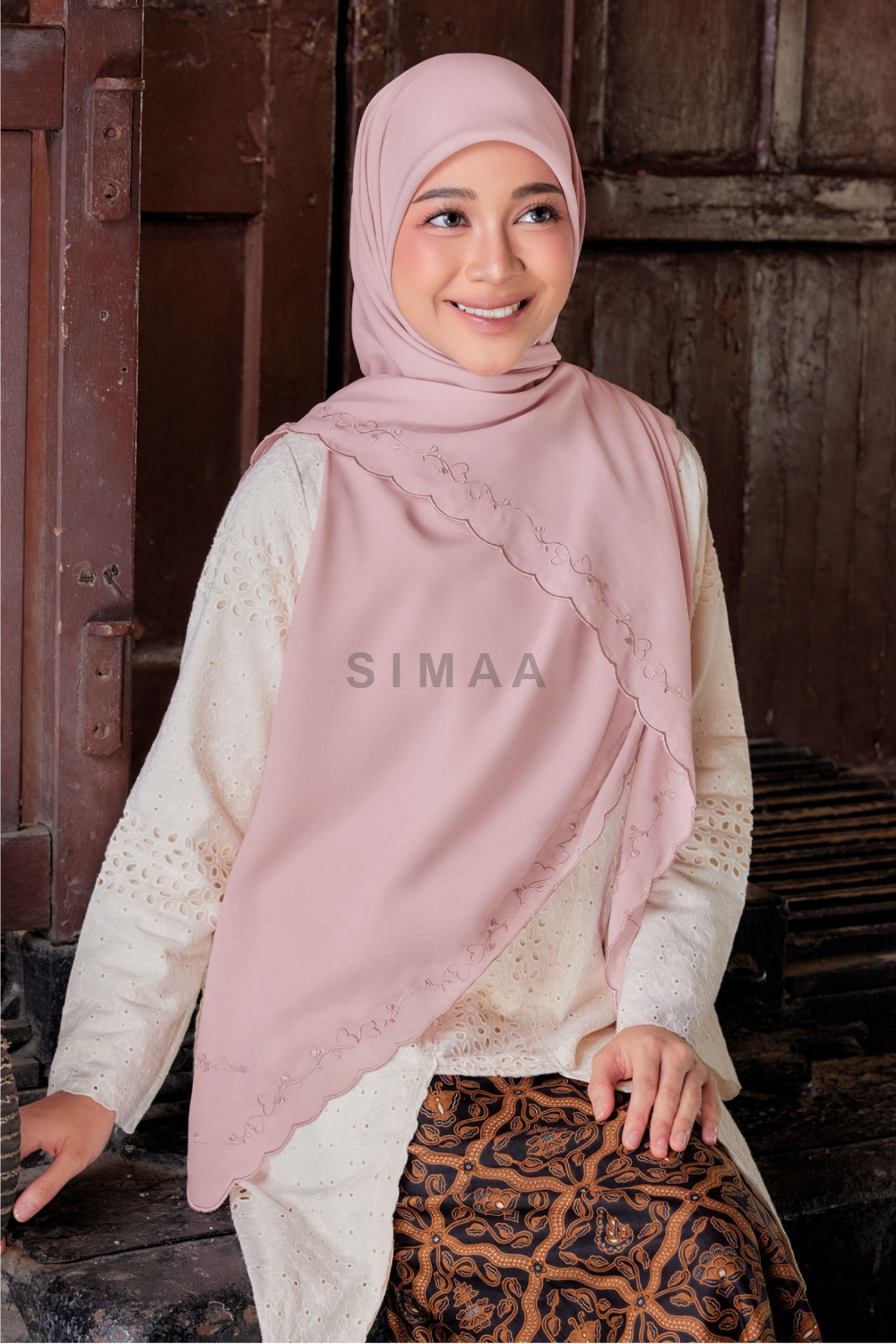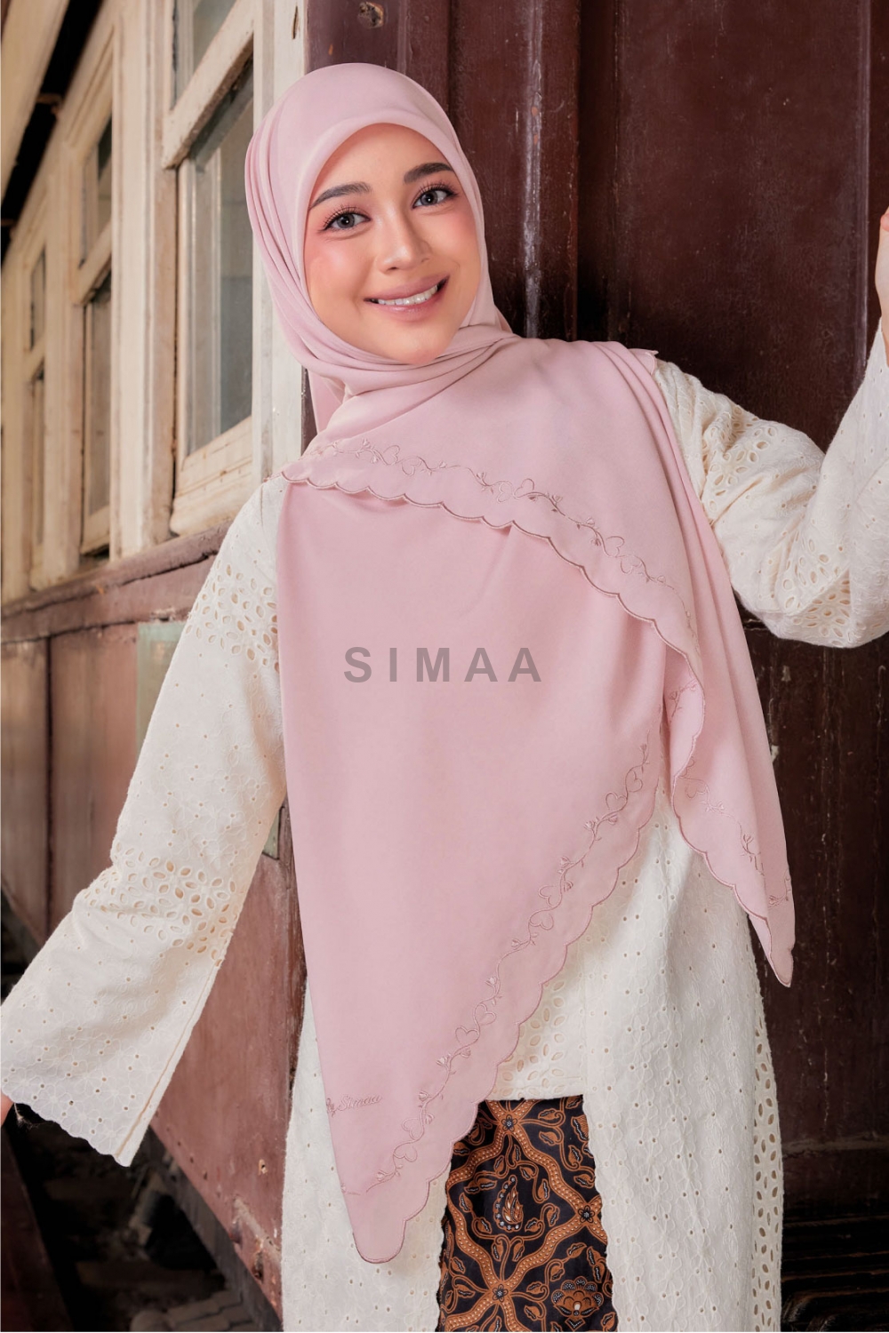 ** Model is 161cm tall and wearing Bawal Sulam Kasih 60"