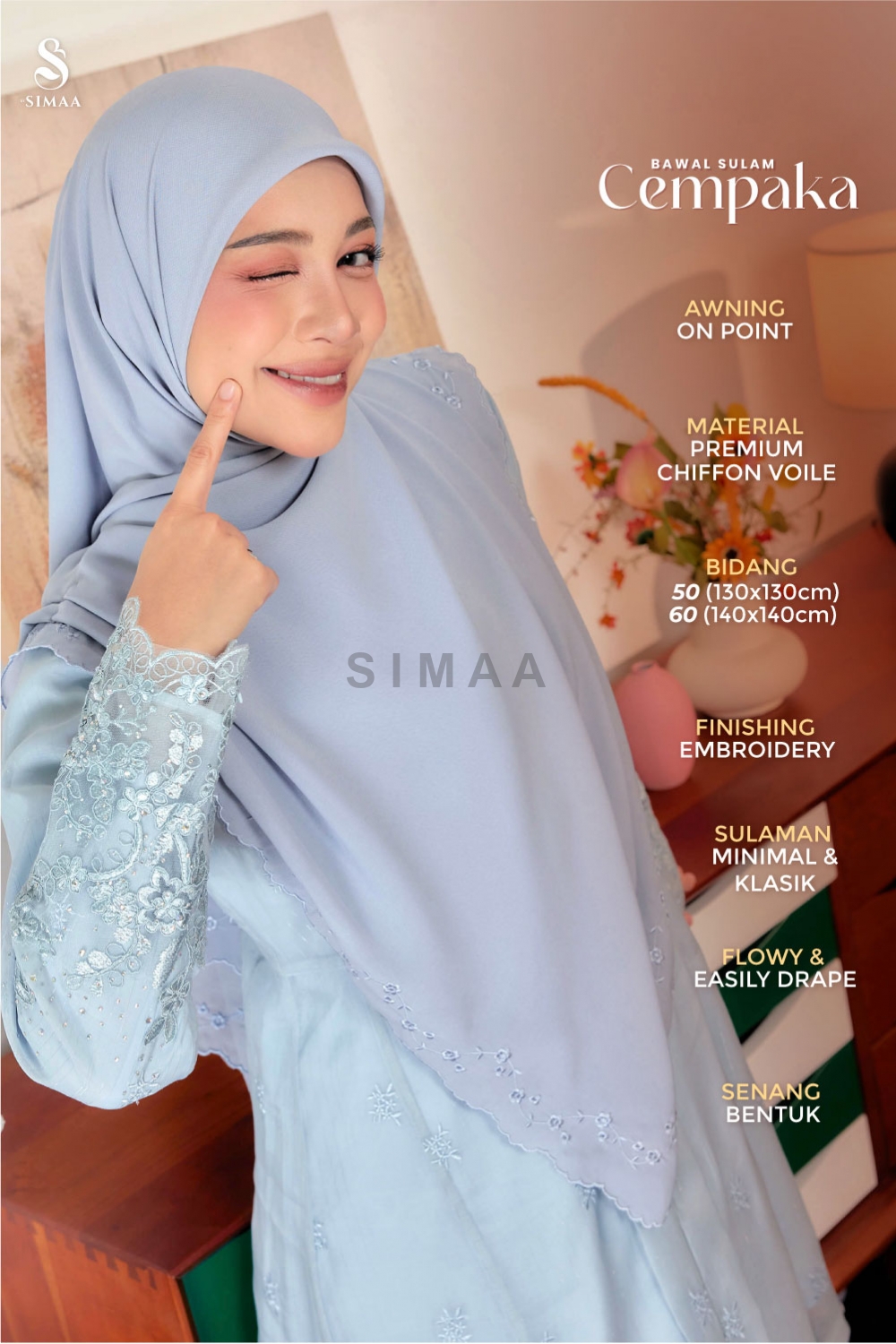 ** Model is 161cm tall and wearing Bawal Sulam Cempaka 60"
