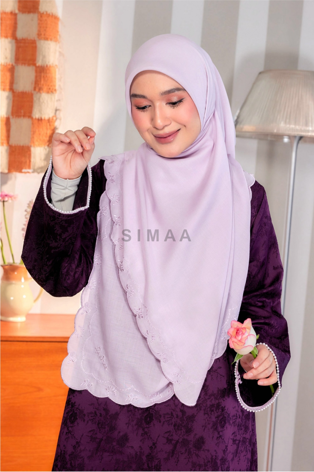 ** Model is 161cm tall and wearing Bawal Sulam Mawar 60"