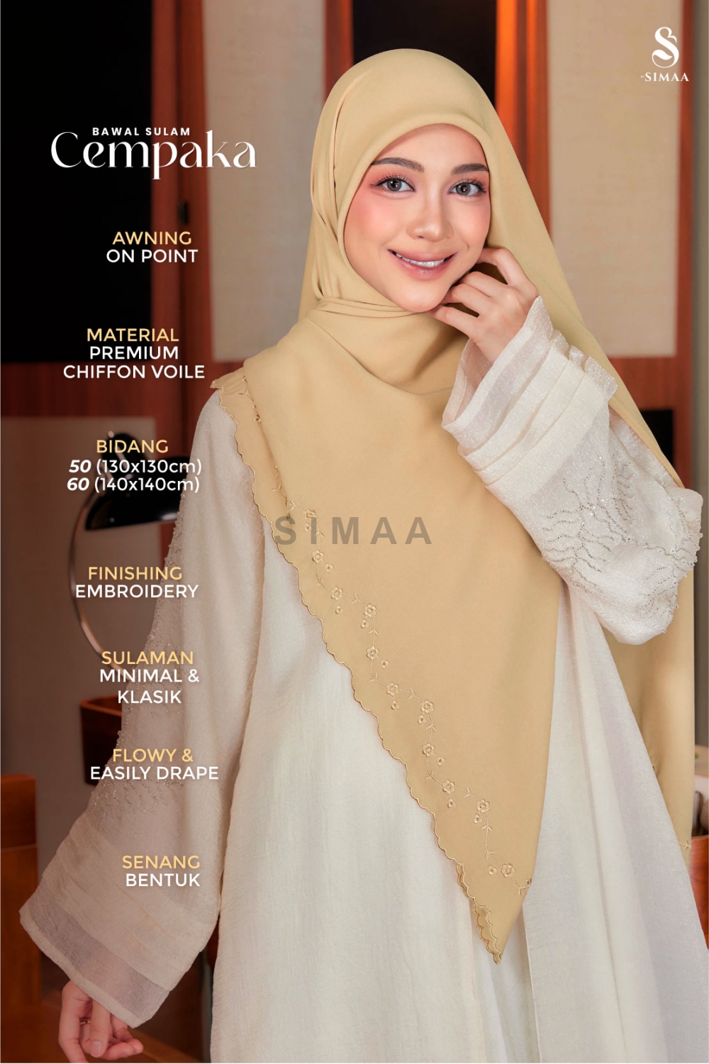 ** Model is 161cm tall and wearing Bawal Sulam Cempaka 60"