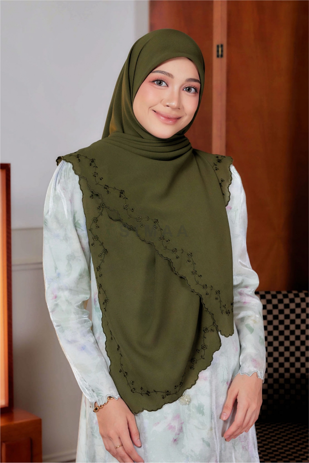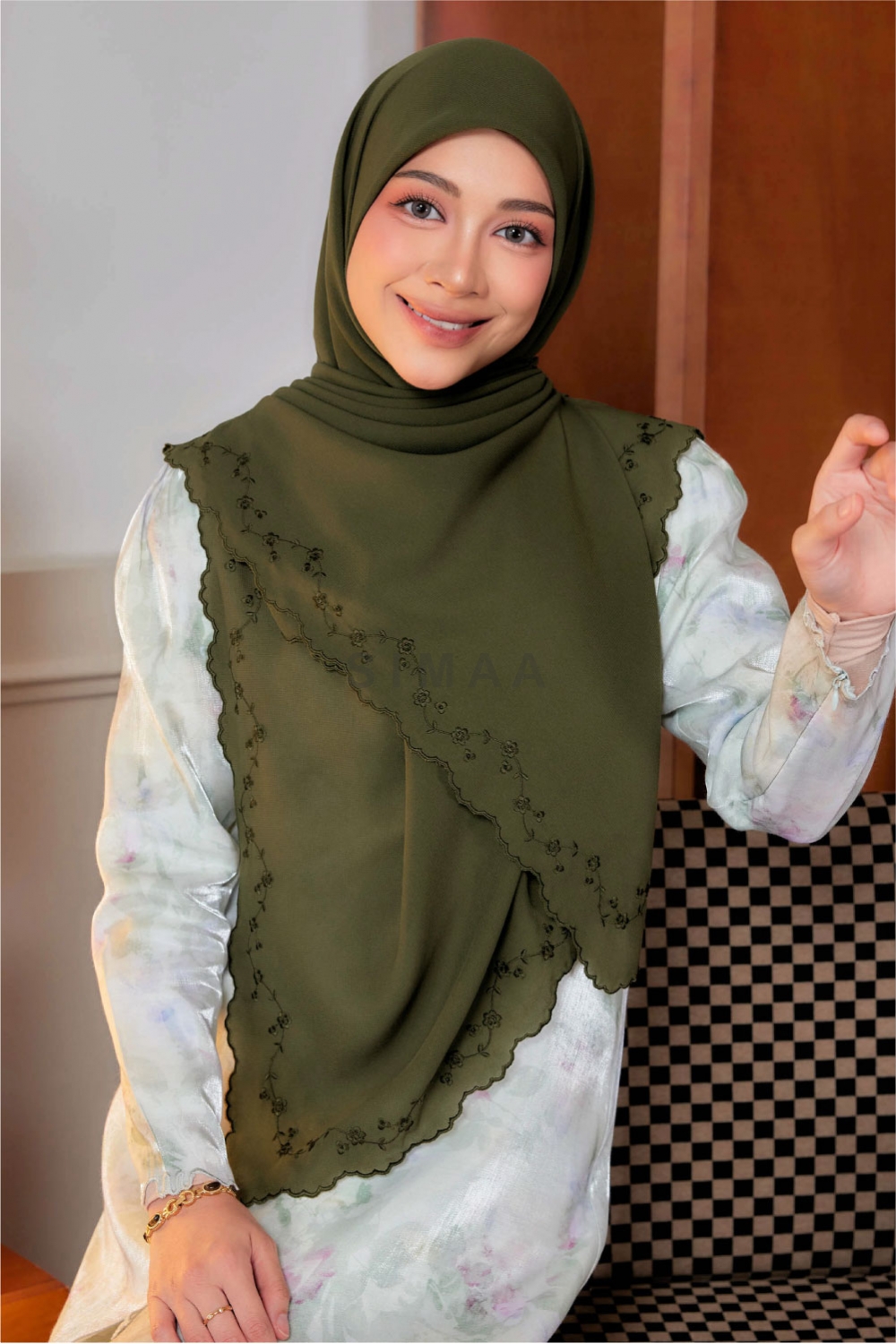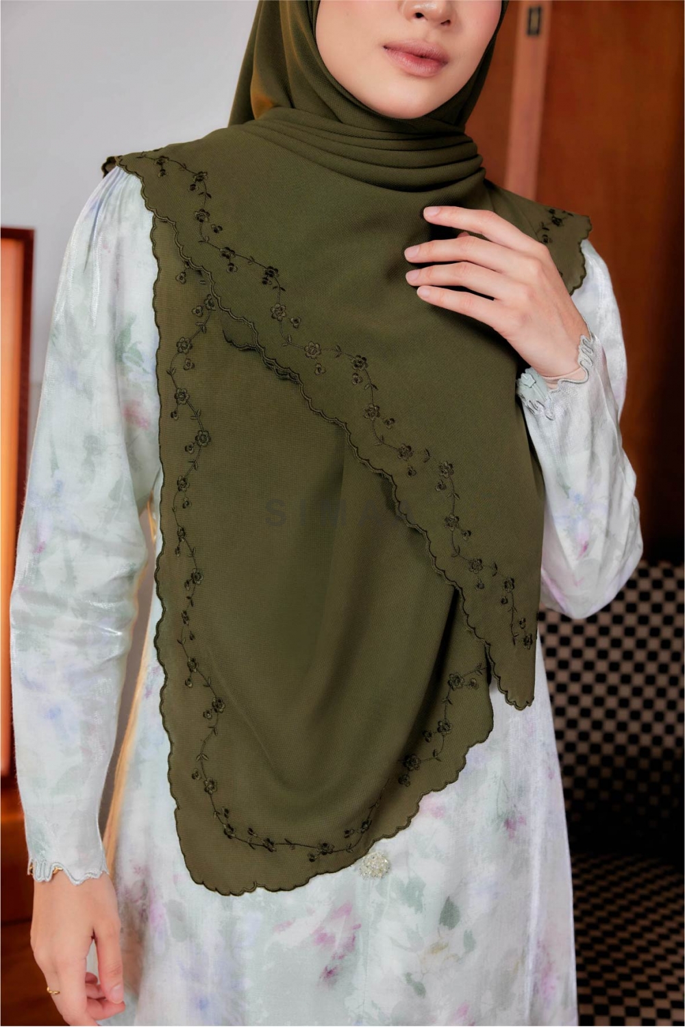 ** Model is 161cm tall and wearing Bawal Sulam Cempaka 60"