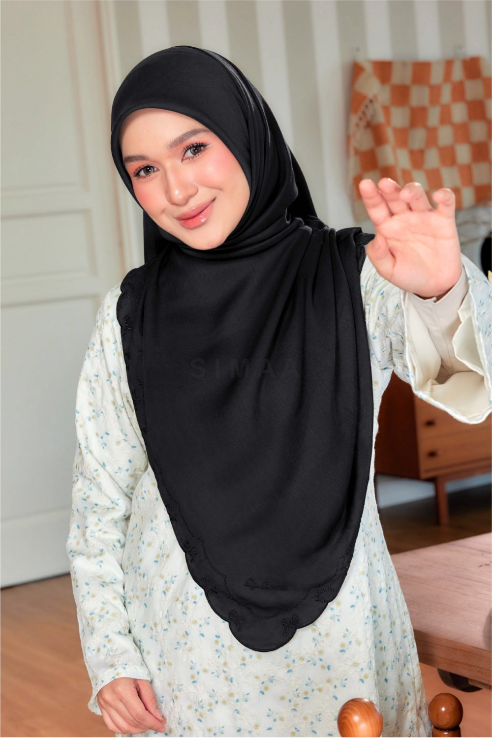 ** Model is 161cm tall and wearing Bawal Sulam Mawar 60"