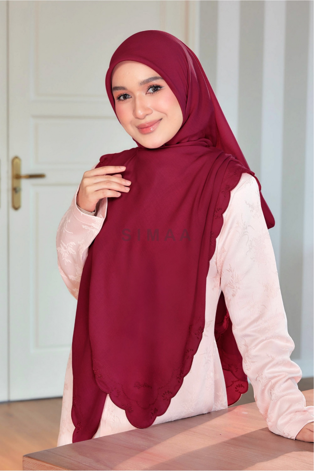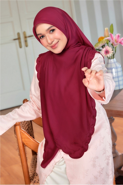 ** Model is 161cm tall and wearing Bawal Sulam Mawar 60"