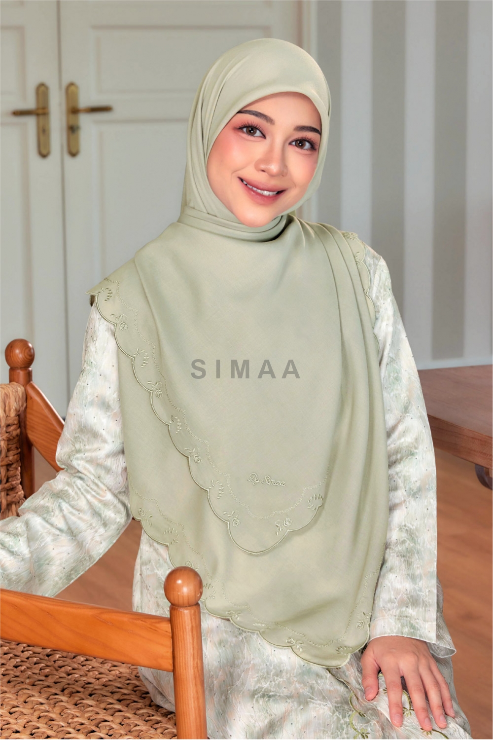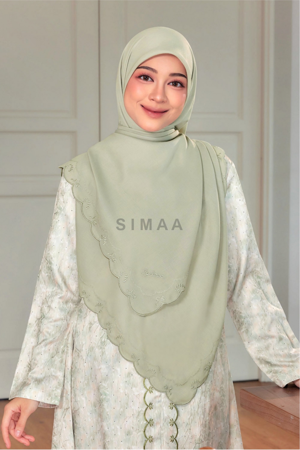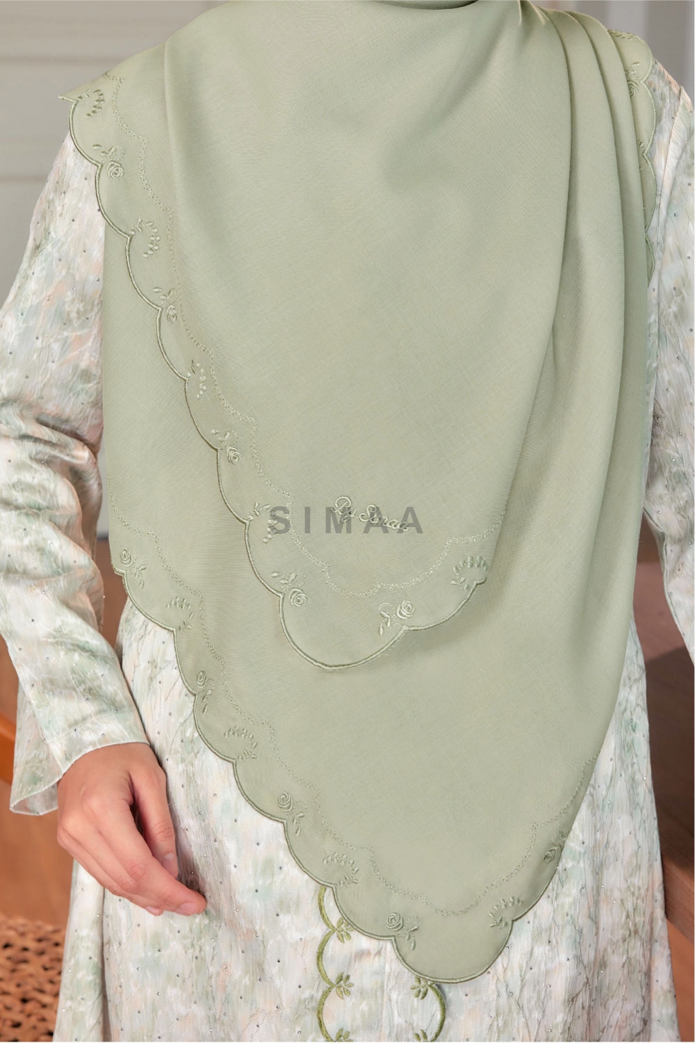 ** Model is 161cm tall and wearing Bawal Sulam Mawar 60"